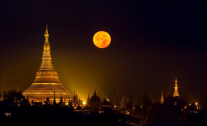 Dát vàng lộng lẫy và được trang trí bằng kim cương, đá quý, ngôi chùa Shwedagon ở Yangon là một trong những công trình...