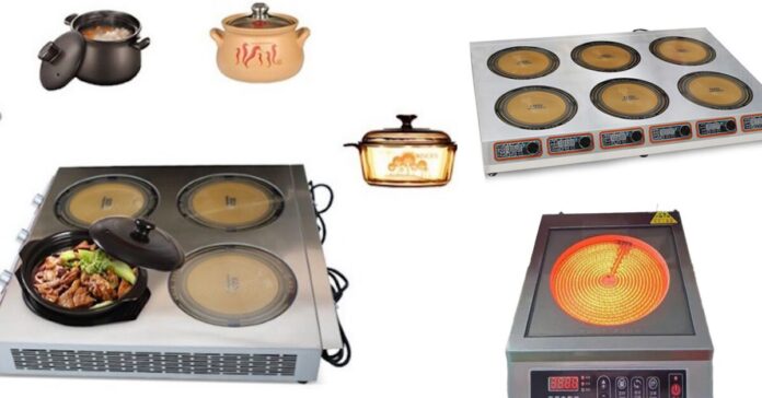 - Bếp hồng ngoại có thể sử dụng được với mọi loại nồi, chảo (kim loại, gang, đất, thủy tinh, gốm, v.v.) miễn là chúng chịu được nhiệt.